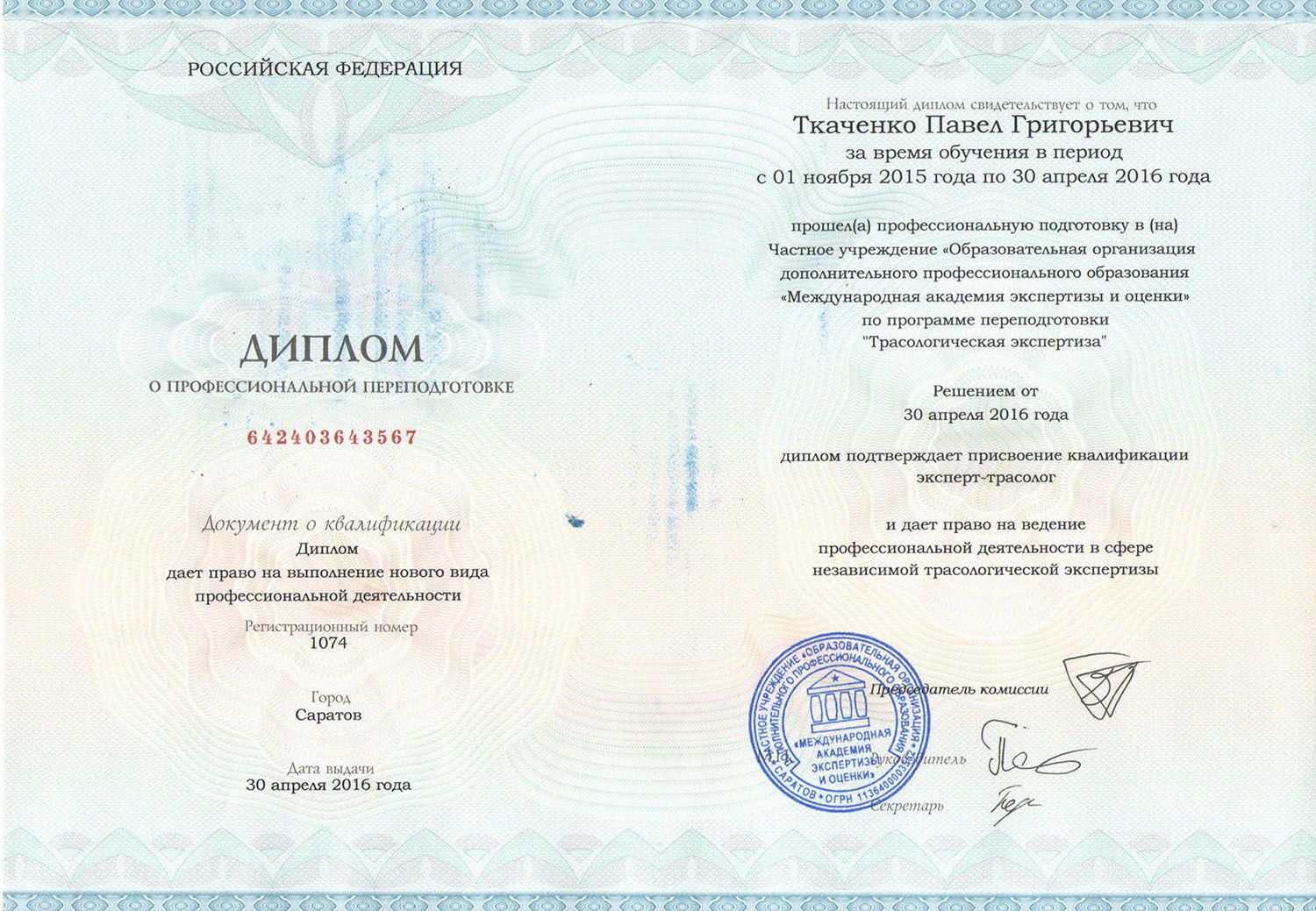 В результате обучения Вы получаете диплом о профессиональной переподготовке