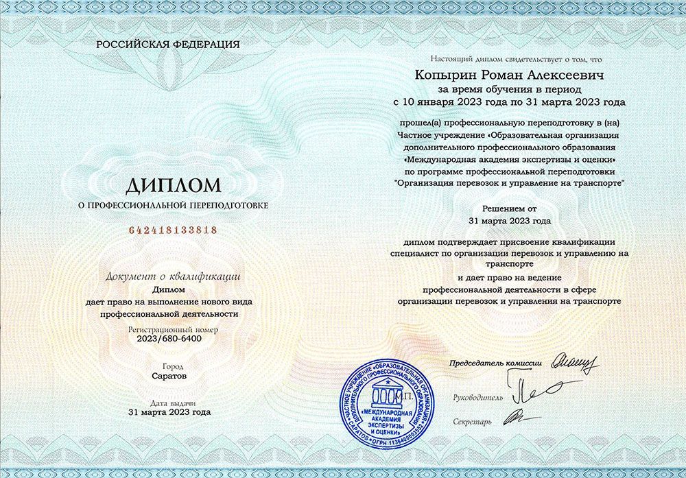В результате обучения Вы получаете диплом о профессиональной переподготовке