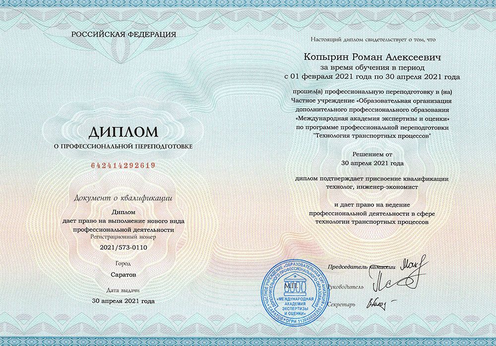 В результате обучения Вы получаете диплом о профессиональной переподготовке
