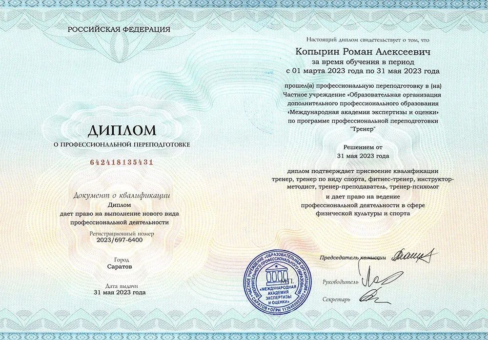Квалификация по диплому: тренер, тренер по виду спорта, фитнес-тренер, инструктор-методист, тренер-преподаватель, тренер-психолог.