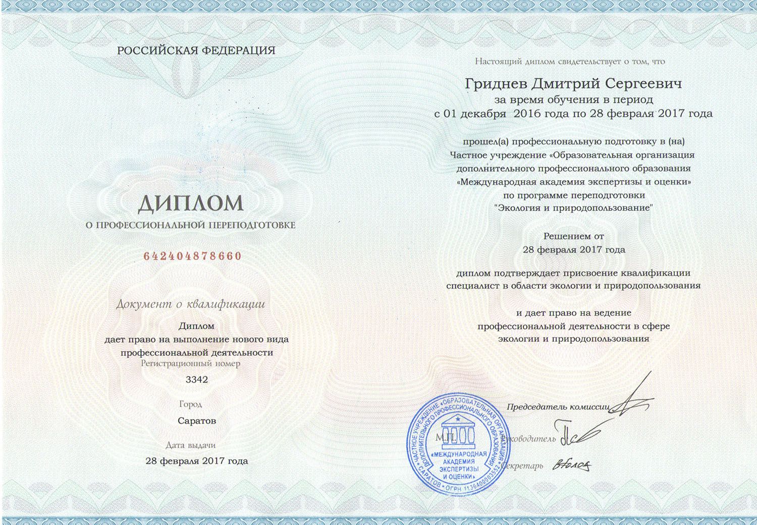 В результате обучения Вы получаете диплом о профессиональной переподготовке
