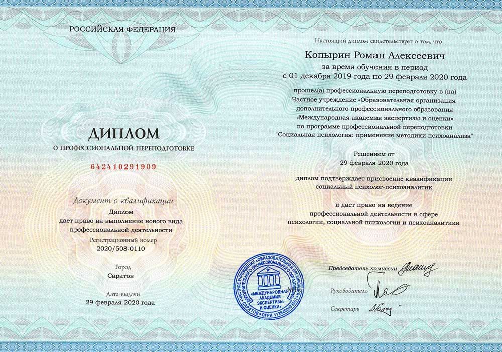 Профессиональная переподготовка по программе «Социальная психология: применение методики психоанализа»
