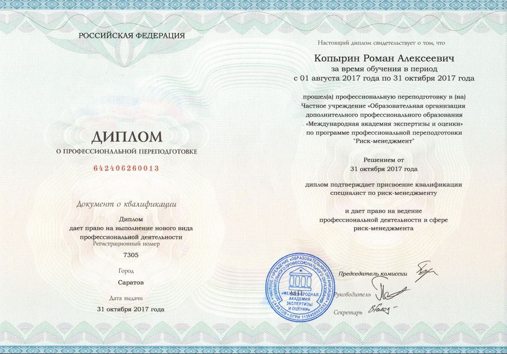 В результате обучения Вы получаете диплом о профессиональной переподготовке