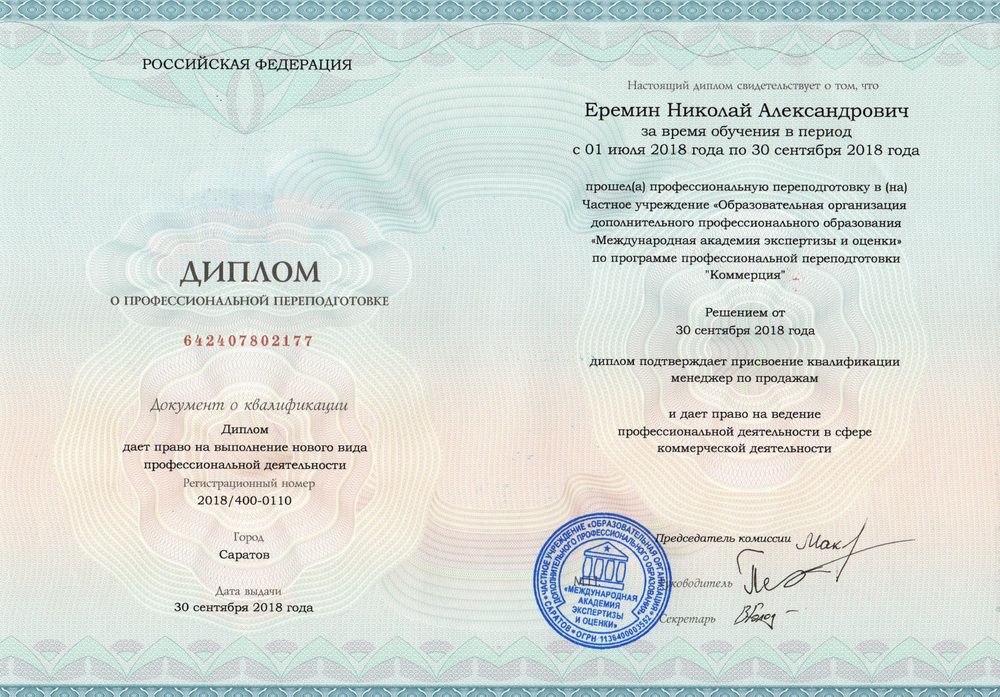 В результате обучения Вы получаете диплом о профессиональной переподготовке