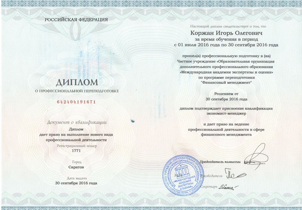 В результате обучения Вы получаете диплом о профессиональной переподготовке