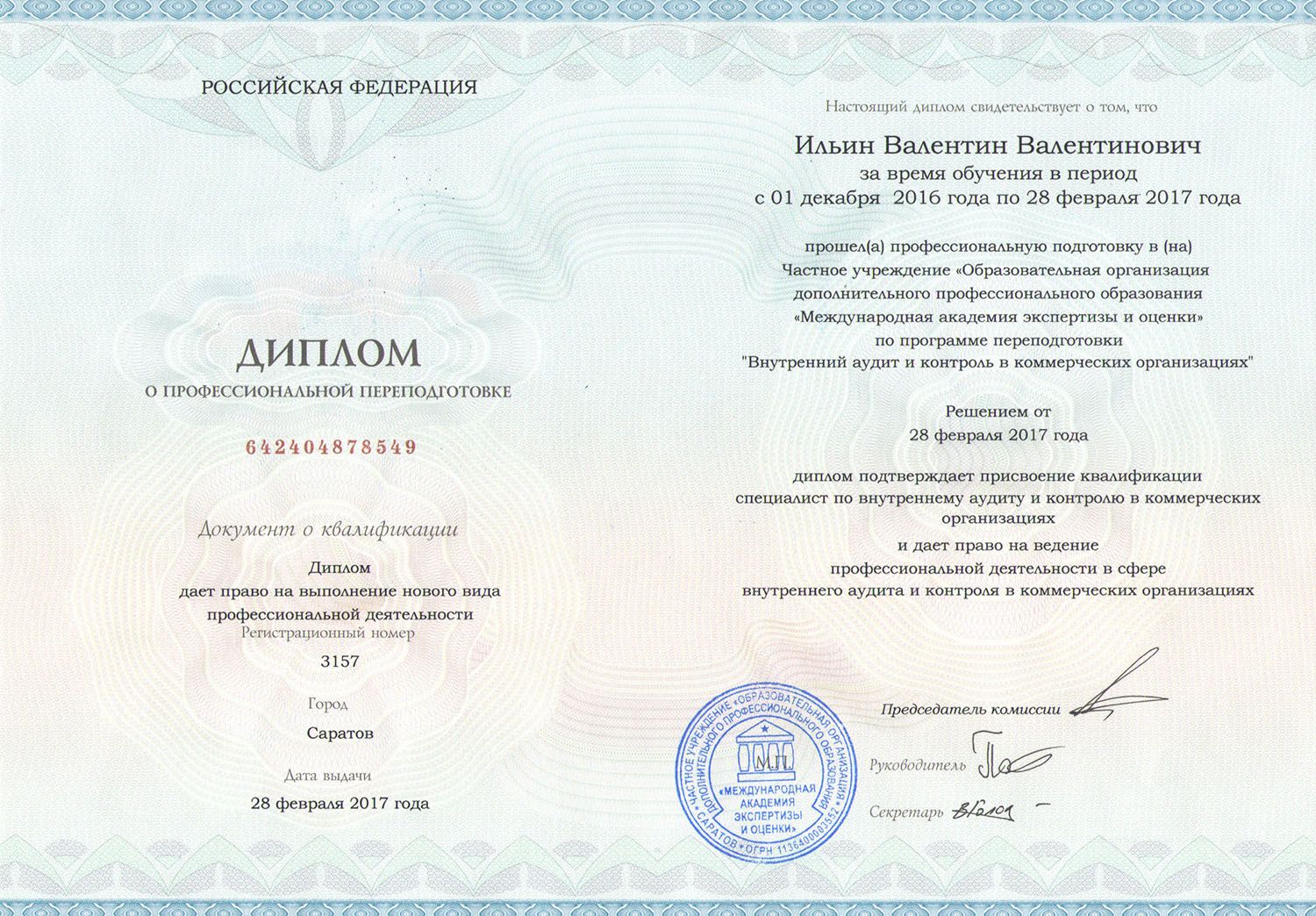 Название программы: Внутренний аудит и контроль в коммерческих организациях.