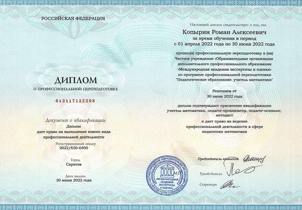 В результате обучения Вы получаете диплом о профессиональной