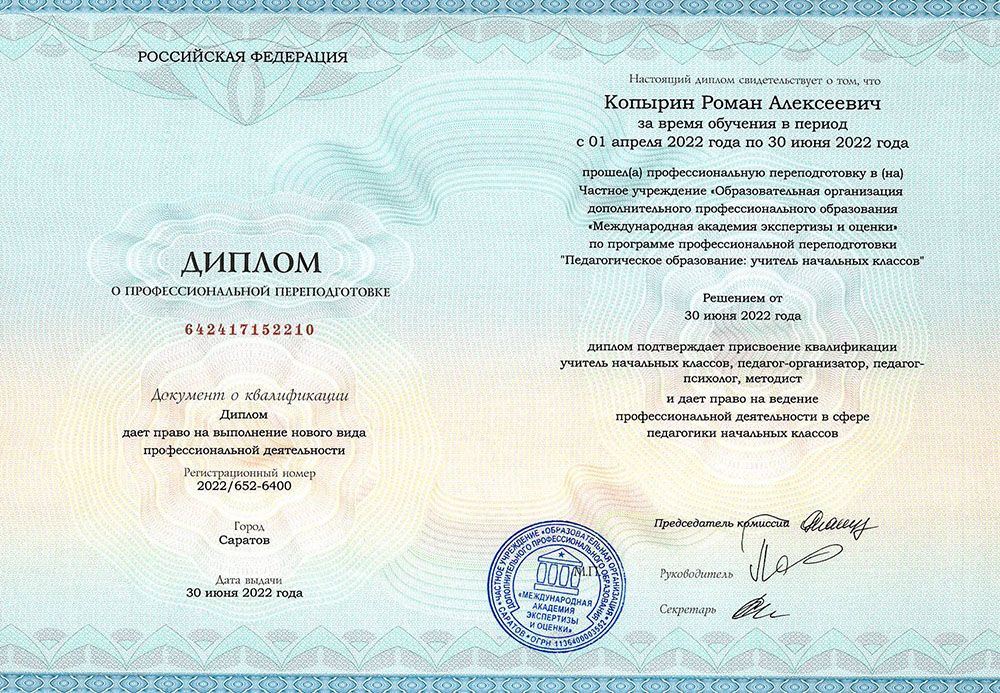 В результате обучения Вы получаете диплом о профессиональной переподготовке