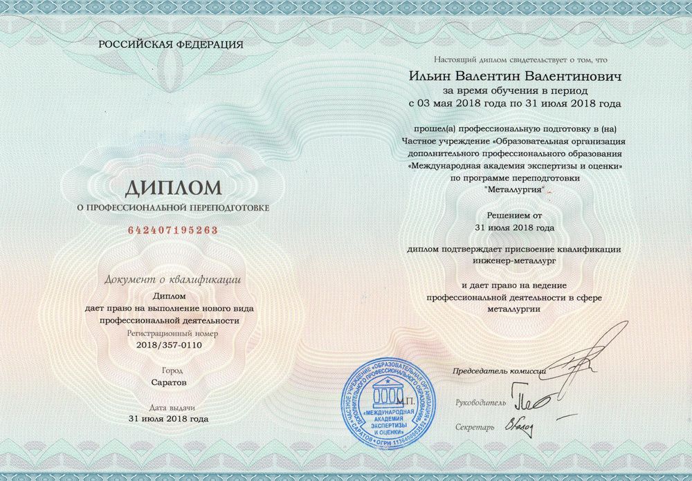 В результате обучения Вы получаете диплом о профессиональной переподготовке