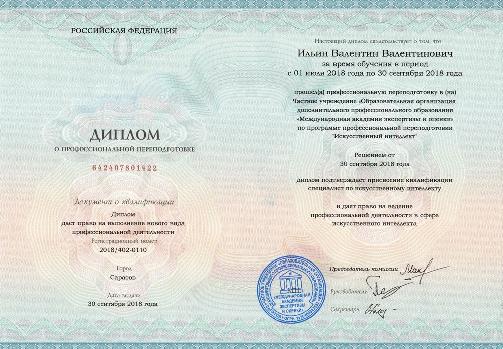 В результате обучения Вы получаете диплом о профессиональной переподготовке