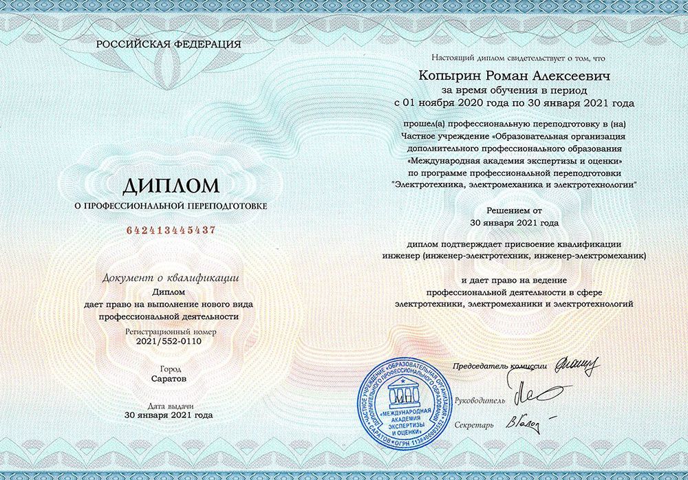 Профессиональная переподготовка по программе «Электротехника, электромеханика, электротехнологии»