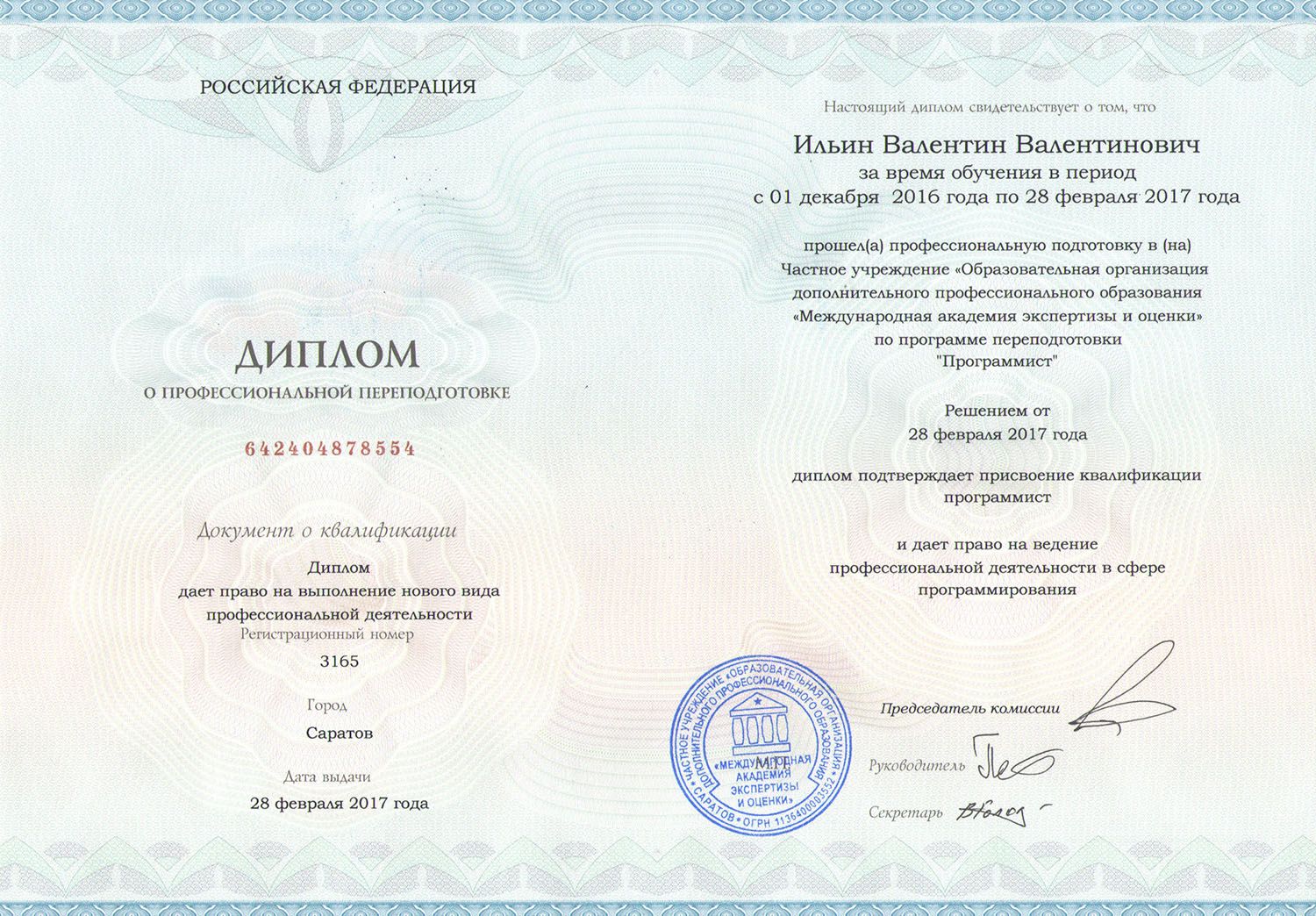 В результате обучения Вы получаете диплом о профессиональной переподготовке